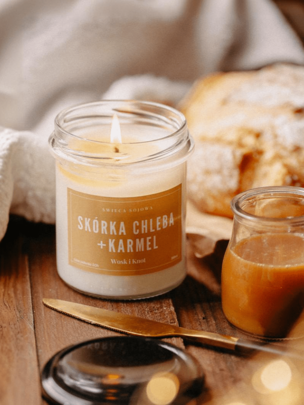 Świeca sojowa SKÓRKA CHLEBA + KARMEL – Wosk i Knot